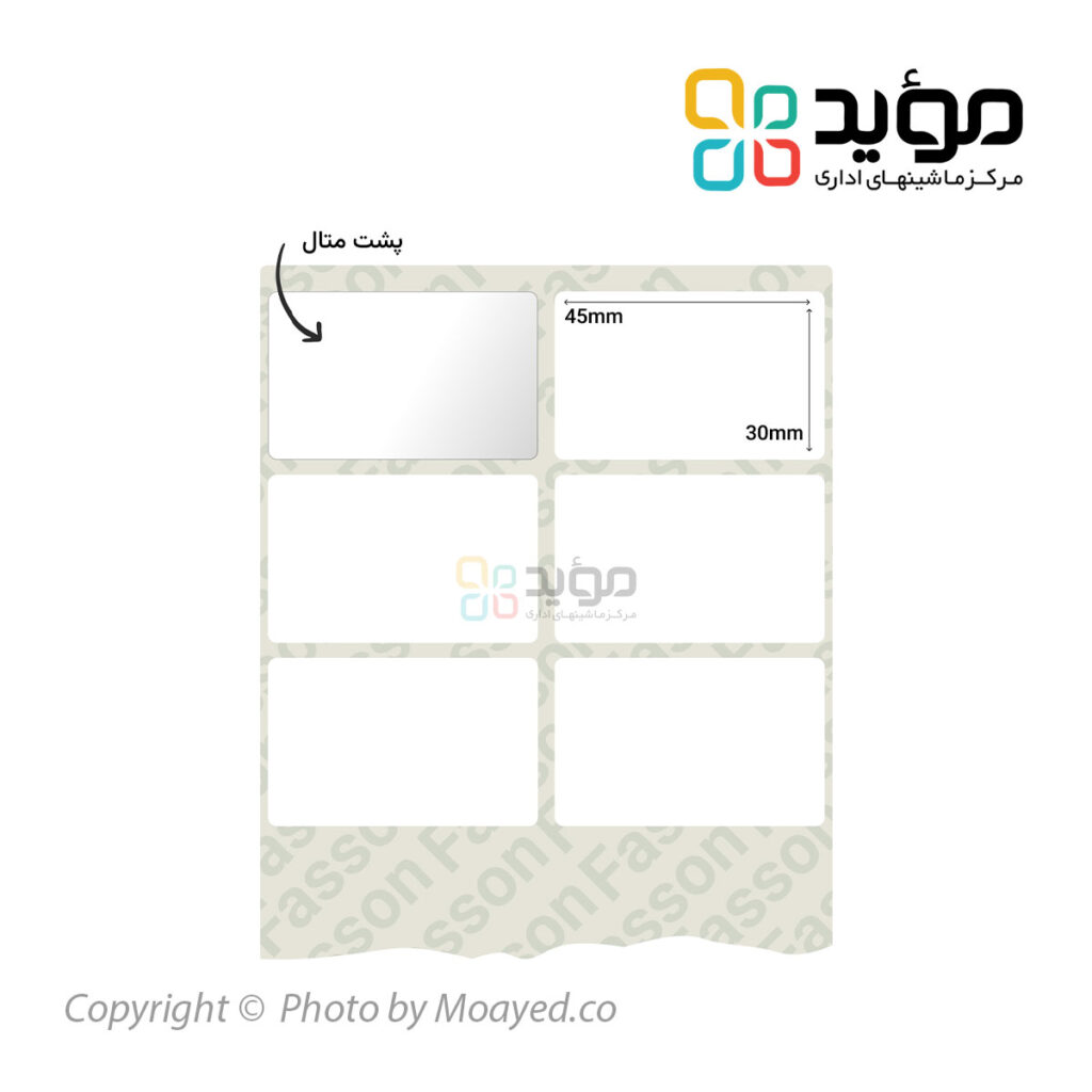 لیبل پشت متال دو ردیفه 30×45 میلیمتر Fasson