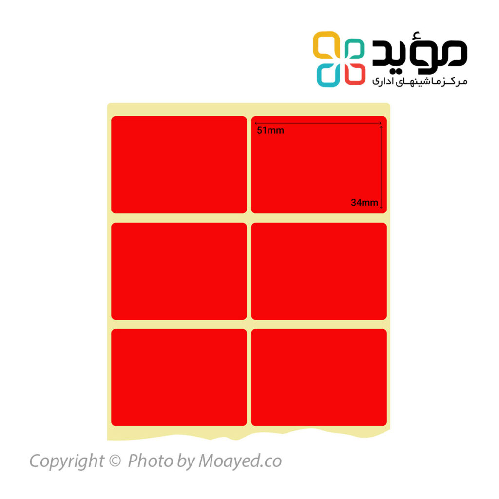 لیبل کاغذی دو ردیفه رنگی 51×34 میلی متر